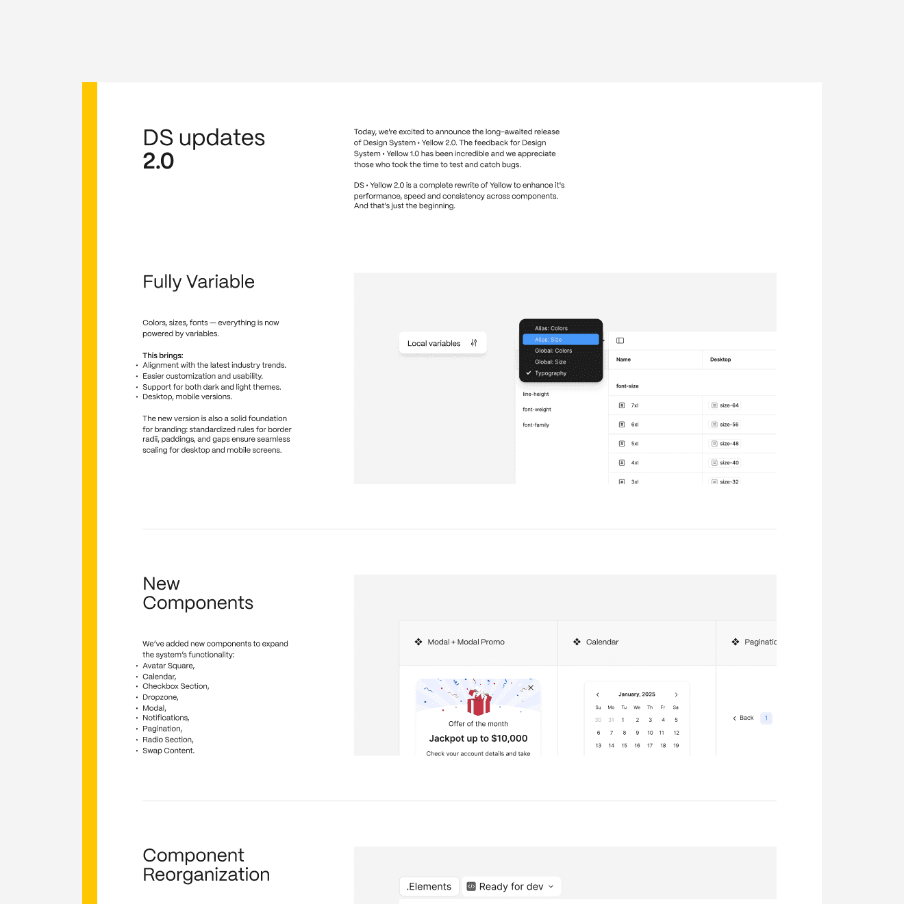 Each component of Design System Yellow is created in accordance with the latest standards in the design system development industry.